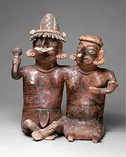 The Western Mexico shaft tomb tradition or shaft tomb culture refers to a set of interlocked cultural traits found in the western Mexican states of Jalisco, Nayarit, and, to a lesser extent, Colima to the south, roughly dating to the period between 300 BCE and 400 CE, although there are disagreements on this end-date. Nearly all of the artifacts associated with this shaft tomb tradition have been discovered by looters and are without provenance, making dating problematic.[4] The first major undisturbed shaft tomb associated with the tradition was not discovered but until 1993, at Huitzilapa, Jalisco.[5]