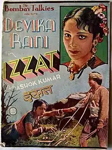 Izzat (transl.Honour) is a 1937 Hindi film social drama, directed by Franz Osten. The film was produced by Himanshu Rai for Bombay Talkies.[1] The credit roll of Izzat attributes the story to Dr. G. Nundy, adapted for screen by J. Nundy. The screenplay was by Niranjan Pal, who handled the story section of Bombay Talkies.[2] J. S. Casshyap wrote the songs and dialogues and was assisted in dialogue direction by S. I. Hassan. The music was composed by Saraswati Devi, with actor Mumtaz Ali doubling as the choreographer. The film starred Ashok Kumar with Devika Rani in the lead, while the rest of the cast included Mumtaz Ali, Madhurika, Kamtaprasad, Chandraprabha, and P. F. Pithawala.[3]