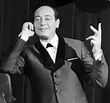 János Komlós (9 February 1922, in Budapest – 18 July 1980, in Budapest) was an influential Hungarian-Jewish writer, journalist, stand-up comedian under the Kádár political era in Hungary. A member of the ÁVH before 1956, he became an editor of the Népszabadság the Communist Party daily. In 1967, he founded the Mikroszkóp Színpad, which he directed until his death.