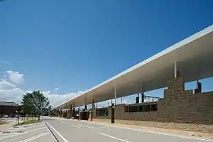 The station has a single side platform and a single island platform, connected to the station building by a level crossing.