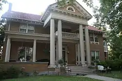 The J.E. Little House is a historic house at 427 Western Avenue in Conway, Arkansas, USA. It is a two-story masonry structure, its walls finished in brick and stucco, with a gabled tile roof that has exposed rafter ends and brackets in the Craftsman style. Its most prominent feature is a projecting two-story Greek temple portico, supported by Tuscan columns. It shelters a balcony set on the roof of a single-story porch, which extends to the left of the portico. It was built in 1919 for John Elijah Little, a local businessman who was a major benefactor of both Hendrix College and Faulkner County Hospital.[2]