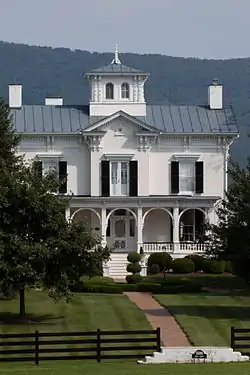 J.W.R. Moore House, also known as the J.W. Miller House and J.C. Biller House, is a historic home located at Mount Jackson, Shenandoah County, Virginia. It was built in 1871, and is a two-story, three bay, "L"-shaped brick dwelling in the Italianate style. It features elaborate wood trim and a large, square belvedere with a tall finial. Also on the property are the contributing brick combination icehouse / smokehouse / summer kitchen (c. 1871) and a frame tenant house.[3] It was listed on the National Register of Historic Places in 2005.[1]