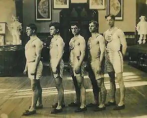St. Louis U's 1906–07 champion relay team (left to right): Clarence "Pike" Kenney, Martin McMorrow, Bill Clancy, Robinson and Schneider