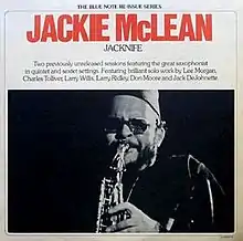 Jacknife is an album by American saxophonist Jackie McLean. It actually comprises two volumes, one recorded in 1965 and the other in 1966. They were originally given the catalogue number of BLP 4223 and BLP 4236, but were shelved for ten years and issued together in 1975 as a double LP, with the number BN-LA457-H2.[1] Whilst the 1965 tracks were released on a limited edition CD in 2002, those from 1966 have never been released singularly; however, they can be found on the four-disc Mosaic compilation The Complete Blue Note 1964-66 Jackie McLean Sessions, which was limited to 5,000 copies.