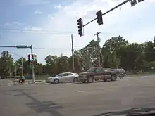 According to the U.S. Census Bureau, Jacksonville has a total area of 10.76 square miles (27.87 km2), of which 0.20 square miles (0.52 km2), or 1.83%, are water.[4] The city sits in the middle of mostly flat, fertile farmland. One branch of Mauvaisterre Creek empties into Lake Mauvaisterre, a small reservoir surrounded on three sides by parkland. 4 miles (6 km) south of the city lies Lake Jacksonville, a 476-acre (193 ha) lake with 18.6 miles (29.9 km) of shoreline.[25] Lake Jacksonville was named the "Number One Fishing Spot in Illinois" by Field & Stream magazine.[26]