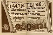 Jacqueline (also known as Blazing Barriers) is a 1923 American silent northern adventure drama film directed by Dell Henderson and starring Marguerite Courtot, Lew Cody and Edmund Breese.[1] It is based on a 1918 short story of the same title by James Oliver Curwood. It takes place amongst those working in the lumber industry in Quebec.