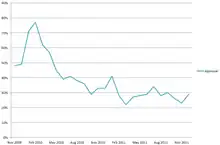 | 25 November 2011 | Last poll before losing the election | 23[32] |