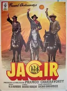 Jagir (Hindi transl. "The Estate"), also known as Teen Murti (Bengali transl. "The Three Idols"), is a 1984 Indian Dacoit western film directed by Pramod Chakravorty. The film features an ensemble cast of Dharmendra, Mithun Chakraborty, Zeenat Aman, Pran, Danny Denzongpa, Shoma Anand and Amrish Puri. Two language versions were released, a Hindi version as Jagir and a Bengali version as Teen Murti.[2] The film released on the Diwali weekend along with another Dharmendra starrer Jeene Nahi Doonga. Upon release the film received positive reviews from critics and was a hit domestically as well as in Soviet Union.