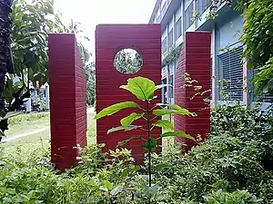 The main administrative building (shown in the picture), is a good example of British Indian colonial architecture. Other important older buildings of the colonial period include the Fuller Hostel Biology Building, Chemistry Building, Physics Building, former Muslim Hostel etc. Newer buildings include the Library and Auditorium, an Arts building, both dating from the 1950s and a new Science building, dating from the 1990s.