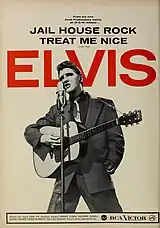 The single, with its B-side "Treat Me Nice" (another song from the film's soundtrack) was a US number one hit for seven weeks in the fall of 1958, and a UK number one hit for three weeks early in 1959.[6] In addition, "Jailhouse Rock" spent one week at the top of the US country charts,[7] and reached the number one position on the R&B chart.[8]