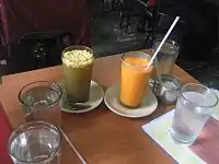 Jal-jeera is an Indian beverage. It is flavored with a spice mix known as jal-jeera powder. In Hindi, "jal" means water and "jeera" means cumin. The beverage base is either lemonade or similar tangy drinks and jaljira spices, and is a popular summer drink in India. It is sometimes served as an appetizer, as it is intended to "startle" the taste buds.
