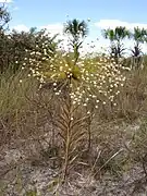 The Jalapão region has an area of 34,000 square kilometres (13,000 sq mi) and covers the municipalities of Lagoa do Tocantins, Lizarda, Santa Tereza do Tocantins, Mateiros, Novo Acordo, Ponte Alta do Tocantins and São Félix do Tocantins.[1] It has an arid savanna climate with orange sand dunes and rock formations, but is crossed by many fast-flowing rivers and streams. Conservation units include the Jalapão State Park, the Nascentes do Rio Parnaíba National Park, the Serra Geral do Tocantins Ecological Station, the Serra da Tabatinga Environmental Protection Area and the Jalapão Environmental Protection Area.[2]