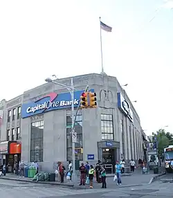 The legacy of the Jamaica Savings Bank lasted for nearly a century until the bank was acquired by North Fork Bank in 1999, which itself was acquired by Capital One Bank in 2008.[6] At the time, the bank served the New York City metropolitan area with over 350 branches and around $60 billion in assets. As of this writing, the Sutphin Boulevard branch of the Jamaica Savings Bank building is a Capital One Bank branch. The main office Jamaica Savings Bank building was listed on the National Register of Historic Places in 1983, and a New York City Landmark in 2008.[7] The second branch building on Sutphin Boulevard was dedicated as a New York City Landmark in 2010.[1]