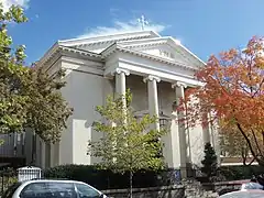 Upon returning to the United States, he was appointed by Bishop Fenwick as president of the College of the Holy Cross on October 9, 1845, succeeding the school's first president, Thomas F. Mulledy.[52] As president, he oversaw the construction of an east wing at the college, in accordance with the original plan for the school, which contained a dining room, chapel, study hall, and dormitory.[52] This wing was the only part of the school spared by a subsequent fire in 1852.[53] In 1846, he saw to the burial of the founder of the institution, Fenwick, in the college cemetery, pursuant to his wishes. The number of students increased during his administration.[52]