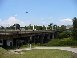 With the declaration of Cumberland Highway on 26 August 1988, State Highway 13 was altered to use the new route from its northwestern end at the interchange with Windsor Road to the interchange with Pennant Hills Road at North Parramatta; the northern end of Main Road 309 was extended north along James Ruse Drive to meet State Highway 13 at the same interchange.[3] In July 1994, as part of a grade separation project, a bridge was built over James Ruse Drive at Rydalmere to eliminate the intersection with Victoria Road.[13]
