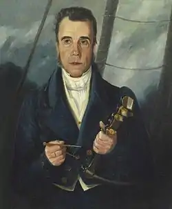 ![]() Captain James Scott holding a compass | |