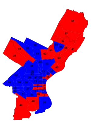McDermott was the city Republican organization's choice for mayor in 1963, and he easily defeated three independent candidates in the May primary.[14] The Democrats nominated acting mayor James Tate for a full term, and a close race was expected.[15] McDermott campaigned on a reform platform, saying that Tate had worked to sabotage the good-government reforms of the Joseph S. Clark Jr. and Richardson Dilworth administrations that had run the city from 1951 to 1962.[16] Tate responded by contrasting his experience with McDermott's and touted his endorsement by the AFL–CIO.[16] McDermott said that Tate "has never been off the public payroll in twenty-five years" and criticized the mayor's refusal to debate him.[16] The election was closer than the one four years earlier, but McDermott still lost by more than 66,000 votes.[17][18]