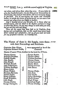 - ↑ "list of settlers in 1608 expedition". Apva.org. Archived from the original on March 23, 2009. Retrieved September 22, 2009.