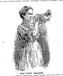 Jane Quirk was born Patsy Jane Holcomb, around 1878 in Keytesville, Missouri, the daughter of Ethan Holcomb and Martha Price.[1] She was raised in Cedar Rapids, Iowa,[2] where from a young age she performed as a singer, dancer and cornetist, along with her brother and sister at social occasions and church events.[3][4] During her teens she lost most of her family, with her sister,[5] brother[6] and mother[7] dying within a five year period. Jane's father died in 1901.[8]