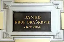 - "Velikani Sabora - grof Janko Drašković" [Great Parliamentarians - Count Janko Drašković] (in Croatian). Croatian Parliament. Retrieved 8 November 2022.