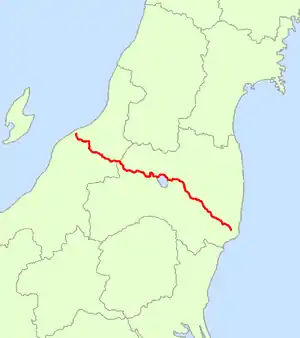 National Route 49 is a national highway of Japan connecting Iwaki, Fukushima and Chūō-ku, Niigata in Japan, with a total length of 246.4 km (153.11 mi).