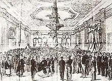 The Kanrin Maru reached San Francisco directly, but the Powhatan (and the embassy) made a stopover in the Kingdom of Hawaii first, where they were greeted by King Kamehameha IV and Queen Emma.[6][7] When it arrived in San Francisco, the delegation stayed for a month, and Fukuzawa had himself photographed with an American girl, a photo that has since become one of the most famous in Japanese history. Fukuzawa also acquired an English–Chinese Webster's Dictionary, from which he began to study English seriously and prepare his own English–Japanese dictionary.[8]