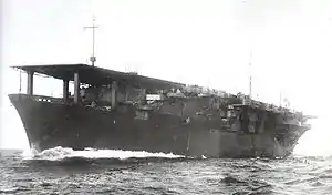 Kaiyō (海鷹, meaning Sea Hawk)[1] was an escort carrier operated by the Imperial Japanese Navy (IJN) during World War II. The ship was originally built as the ocean liner Argentina Maru. She was purchased by the IJN on 9 December 1942, converted into an escort carrier, and renamed Kaiyō.[2] The ship was primarily used as an aircraft transport, escort carrier and training ship during the war. She was badly damaged by repeated air attacks in July 1945 and was scrapped in 1946–48.
