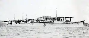 Shōhō (Japanese: 祥鳳, "Auspicious Phoenix" or "Happy Phoenix") was a light aircraft carrier of the Imperial Japanese Navy. Originally built as the submarine support ship Tsurugizaki in the late 1930s, she was converted before the Pacific War into an aircraft carrier and renamed. Completed in early 1942, the ship supported the invasion forces in Operation MO, the invasion of Port Moresby, New Guinea, and was sunk by American carrier aircraft on her first combat operation during the Battle of the Coral Sea on 7 May. Shōhō was the first Japanese aircraft carrier to be sunk during World War II.