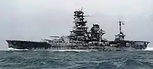 Hyūga (Japanese: 日向) was the second and last Ise-class battleship built for the Imperial Japanese Navy (IJN) during the 1910s. Although completed in 1918, she played no role in World War I. Hyūga supported Japanese forces in the early 1920s during the Siberian intervention in the Russian Civil War. In 1923, she assisted survivors of the Great Kantō earthquake. The ship was partially modernised in two stages in 1927–1928 and 1931–1932, during which her forward superstructure was rebuilt in the pagoda mast style. Hyūga was reconstructed in 1934–1936, improvements being made to her armour and propulsion machinery. Afterwards, she played a minor role in the Second Sino-Japanese War.