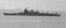 Mogami (最上) was the lead ship in the four-vessel Mogami class of heavy cruisers in the Imperial Japanese Navy. She was named after the Mogami River in Tōhoku region of Japan. The Mogami-class ships were constructed as "light cruisers" (per the London Naval Treaty) with five triple 155-millimetre (6.1 in) dual purpose guns. They were exceptionally large for light cruisers, and the barbettes for the main battery were designed for quick refitting with twin 8-inch (203 mm) guns. In 1937 all four ships were "converted" to heavy cruisers in this fashion.[3] Mogami served in numerous combat engagements in World War II, until she was sunk at the Battle of Leyte Gulf in October 1944.