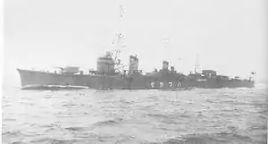 Hamakaze was heavily involved in the fighting in 1943 in the Solomon Islands chain, including the battles of Kula Gulf, Kolombangara, and the 'Battle off Horaniu'. On 7 April 1945, Hamakaze escorted the battleship Yamato from the Inland Sea on her Operation Ten-Go attack on the Allied forces on Okinawa. She was sunk by aircraft of Task Force 58 and sank 150 miles (240 km) southwest of Nagasaki (30°47′N 128°08′E / 30.783°N 128.133°E).[4]