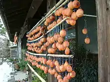 In Korea, it is usually eaten as a dessert or when there are guests at home. The persimmon is cut into sections and the skin and core is usually removed. Persimmons are eaten dry during the winter, and they are very popular amongst children. In autumn, families and farmers from the rural areas collect persimmons and hang them to dry. Powdered sugar is sometimes added to enhance the sweetness.