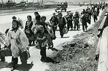 After the Japanese occupation (1931) and establishment of Manchukuo, huge crowds of Japanese agricultural pioneers settled in Manchuria. The first wave of the migration was a five-year trial emigration plan. Many had been young, land-poor farmers in Japan that were recruited by the Patriotic Youth Brigade to colonize new settlements in Manchukuo.[1] The Manchukuo government had seized great portions of these land through "price manipulation, coerced sales and forced evictions". Some Japanese settlers gained so much land that they could not farm it themselves and had to hire Chinese or Korean laborers for help, or even lease some of it back to its former Chinese owners, leading to uneasy, sometimes hostile relations between the groups.[1] These mass migration programs continued until the end of World War II.[2][3][4][5] By 1945, more than a million Japanese lived in Manchuria.