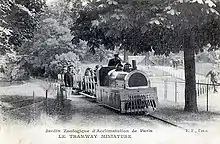 The Jardin d'Acclimatation railway is a 500 mm (19+3⁄4 in) minimum gauge park railway, located in the Bois de Boulogne in Paris. It was opened in 1878 and connects Porte Maillot and the Jardin d'Acclimatation (zoological gardens), 800 meters apart. It was the first passenger-carrying narrow gauge railway of France.
