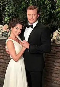 In 2010, the couple was included in an ABC daytime special three-hour program featuring classic couples.[68] A scene from couple's post-prison 2010 reunion appeared on the ABC primetime drama Detroit 1-8-7.[69] Also in 2010, the couple was featured in a Soap Opera Digest article on how soaps were bringing love in the afternoon back to the screen.[70] Academy award nominated actor James Franco was involved in the couple's wedding.[71][72] When their wedding date was announced on the official General Hospital Facebook, a social network created for fan feedback, the announcement was met with tremendous fan satisfaction and support.[73] The anticipation of the fictional couple's wedding also spanned outside of the soap opera medium when they were featured in Cosmopolitan magazine[74] and The Celebrity Bride Guide, which features articles on prominent celebrities and public figures.[75]