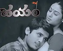 Jayam (transl. Victory) is a 2002 Indian Telugu-language romantic action drama film written, produced and directed by Teja under the banner Chitram Movies. The film stars Nithiin, Sadha and Gopichand in the lead roles and music was composed by R. P. Patnaik.
