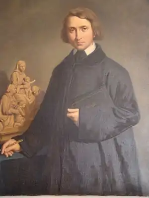 For this church in Montreuil-le-Gast, Valentin executed a limestone altarpiece for the main altar. It comprised a cavalry with angels placed on either side. The work dates to 1861.[8][9] [10] For the same church, Valentin created the altarpiece for the main altar.[11]