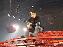 This was the start of a push for Hardy, and at Survivor Series, Hardy and Triple H were the last two men remaining to win the traditional elimination match.[121] Hardy began an on and off tag team with Triple H,[122][123] which eventually led to a respectful feud between the two.[123] The rivalry continued at Armageddon, when Hardy defeated Triple H to become the number one contender for the WWE Championship at the Royal Rumble.[124] In the weeks leading up to the Royal Rumble, Hardy and Randy Orton engaged in a personal feud, which began when Orton kicked Hardy's brother, Matt, in the head in the storyline on the December 31 episode of Raw.[125] Hardy, in retaliation, performed a Swanton Bomb on Orton from the top of the Raw set on the January 14 episode of Raw and seemed to have all the momentum after coming out on top in their encounters.[126][127][128] Hardy, however, lost the title match at the Royal Rumble,[126] but was named as one of six men to compete in the Raw Elimination Chamber match at No Way Out, where he survived to the final two before being eliminated by the eventual winner, Triple H.[129]