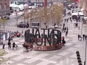 - The Storyteller's Fountain (2005): Big H.C. Andersen sculpture, put up at the Townhall Square in Odense 2005-2011. The sculpture was drowned in Odense Harbor in 2011, during a great protest march against Odense municipality.[44][45]