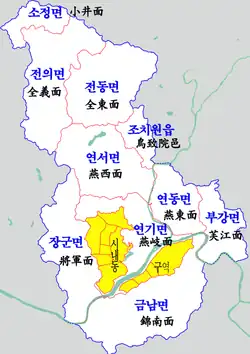 Jeonui-myeon (Korean: 전의면; Hanja: 全義面) is a township of Sejong City, South Korea.