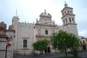 In the 16th century, Jerez was situated on the route that Cristobal de Oñate traversed in search of gold, which he eventually discovered southwest of the city of Zacatecas.[1] The land in this area was granted to Captain Pedro Carrillo Dávila for his role in the Conquest. He was married to the daughter of the conquistador Bernardino Vázquez De Tapia, Sancha De Belmar. Missionaries followed, working to convert the indigenous population in the area until the late 16th century. The original churches in the town were dedicated to Ildefonsus and Saint Dominic.[4]