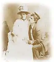 In 1885, Millward met, and later became romantically involved with, William Terriss, with whom she first starred in the extraordinarily successful The Harbour Lights by George R. Sims and Henry Pettitt.[3] Terriss and Millward were then engaged at the Adelphi in its melodramas, beginning with The Bells of Haslemere (1887).[4] Millward and Terriss remained frequent stage partners. In 1889–90, and again in 1893–94, Terriss and Millward toured in the US with Irving.[5] Terriss was murdered outside the Adelphi Theatre in 1897.[6] She performed for several years from 1890 at the Theatre Royal, Drury Lane.[7]