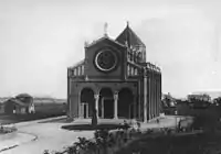 The church's designer, Vilhelm Dahlerup, certainly the leading Danish architect of the period, is remembered for his historistic style whereby he created new buildings on the basis of older, classical examples.[2] There were, however, rather precise instructions on how the Jesus Church should be designed. In particular, Jacobsen provided Dahlerup with a number of photographs of the old churches and artwork in Ravenna, Italy, as an example of the ornate style he wished to see copied in Copenhagen. Dahlerup was also inspired by Notre-Dame la Grande in Poitiers, France, and by the synagogue in Toledo, Spain.[3]