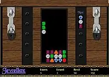 Jewelbox is a computer game developed by Varcon Systems for the Macintosh. It is a clone of Sega's Columns.