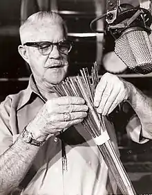 By 1947, Walt Disney was getting too busy and hoarse from smoking to continue voicing Mickey Mouse, so he offered the job to MacDonald. MacDonald voiced Mickey Mouse until his retirement in 1976, at which point he was replaced by his sound effects protégée, Wayne Allwine, for The New Mickey Mouse Club.[1][5] However, MacDonald returned to voice Mickey again for an appearance at the 50th Academy Awards in 1978 and the opening of Star Tours at Disneyland in 1987.[4] Despite formally retiring, MacDonald remained involved with several Disney productions; he voiced Evinrude from The Rescuers (1977) and was often consulted for sound-effects projects.[10][6]