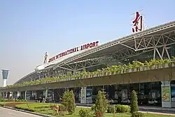 Jinan Yaoqiang International Airport (IATA: TNA, ICAO: ZSJN) is the airport serving Jinan, the capital of Shandong Province, China. The airport is located approximately 33 kilometres (21 mi) northeast of the city center and immediately to the north of the Yaoqiang Subdistrict (遥墙街道) after which the airport is named. By road, the airport is connected to the Jinan Ring (济南绕城高速公路), Beijing–Shanghai, and Qingdao–Yinchuan Expressways.