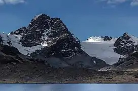 Jist'aña (Aymara for to close and for to carry bulky packages,[3] also spelled Jisthana), also known as Pirámide Blanca[4][5] (Spanish for "white piramid"), is a mountain in the Cordillera Real in the Bolivian Andes, about 5,260 metres (17,260 ft) high. It is situated in the La Paz Department, at the border of the Los Andes Province, Pucarani Municipality, and the Murillo Province, La Paz Municipality. Jist'aña lies between the mountain Kunturiri of the La Paz Municipality in the southeast and the peaks of Kunturiri of the Los Andes Province in the northwest. The rivers Kunturiri (Condoriri) and Jist'aña Jawira (Jistano Jahuira) originate near the mountain. Kunturiri River flows to Ch'iyar Quta, a lake southwest of Jist'aña, and Jist'aña Jawira which later is named Uma Pallqa (Uma Palca) flows to the northeast.[1][6]