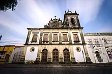 The Historic Center of João Pessoa, recognized as National Institute of Historic and Artistic Heritage in December 2007,[47] covers areas in the neighborhoods of the Center, Róger, Jaguaribe, Tambiá and Varadouro. There are listed 37 hectares in area and estimated around 700 buildings, in addition to streets, squares and historic parks that integrate this set, comprising most of the neighborhoods of Varadouro and the Center of the city. Its buildings make up a scenario of different styles and eras full of townhouses, squares, colonial houses and secular churches, being considered the main architectural collection of Paraíba, reporting the various phases of local history, and one of the largest and most important historical sites in[48] Brazil.[49]