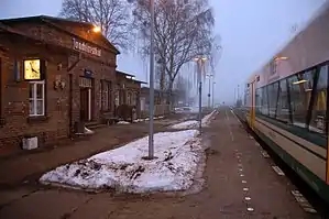 Joachimsthal station is a railway station in the municipality of Joachimsthal, located in the Barnim district in Brandenburg, Germany.