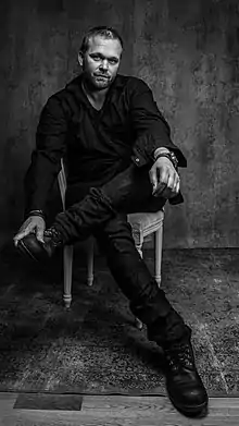 He has a Britpop/Indie pop band named Narcissistic Street. They released the CD Soldier in Me in 2008.[35][36] The album was recorded before he made his big breakthrough as the medieval knight and had to postpone the album release due to massive Arn project.[6] In December 2011 the band performed at the European premiere of David Fincher's The Girl with the Dragon Tattoo.[37]